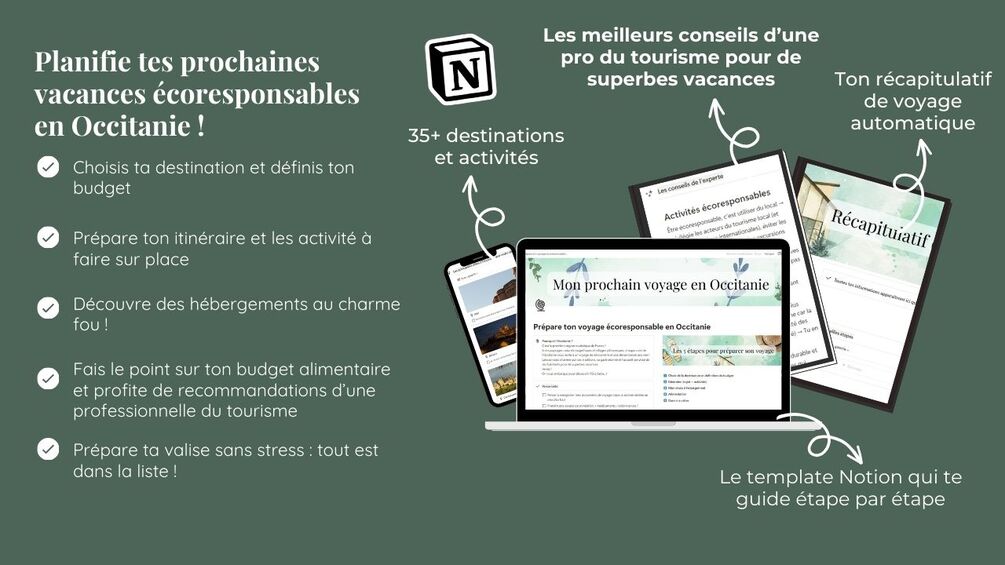 Découvre notre planificateur de vacances écoresponsables sur Notion, conçu pour rendre chaque étape de ton voyage simple et agréable.